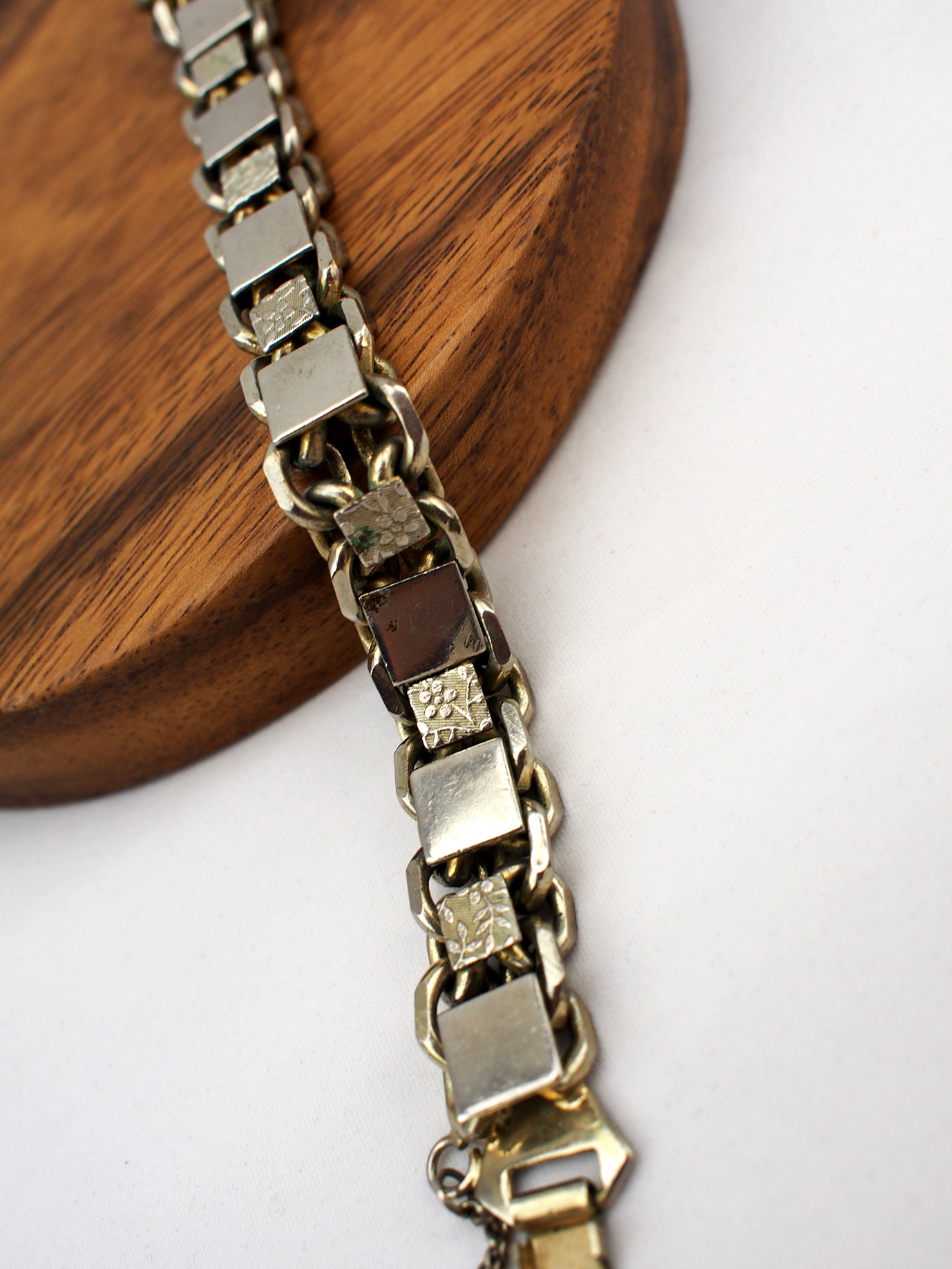 sold 秩.序/手鍊 Geometric Metal / Bracelet 1940s TWD 2900- 已售 sold Date: 04/20/2014Author: VINLUX Category: Vintage、手鍊/手鐲 標籤: 1940s、bracelet、Copper alloy、銅合金、鎳、France、Geometric Metal、Nickel、vintage、手鍊、手鍊/手鐲、法國 文章分頁導航 ← sold 伊甸的使者/項鏈 The Snake / Necklace 1980s TWD 2300- 已售 sold sold- 巴黎/項鏈 Paris / Choker 1980s TWD 2100- 已售 sold → 秩.序/手鍊 材質:鎳/銅合金 產地:法國 年份:1940年代 長度:約18公分 Geometric Metal / Bracelet / 18 cm / Nickel / Copper alloy / France / 1940s 當一群古老的金屬小方塊 在妳的手腕上 一個接一個的圍成圈圈 這便是一個有秩序的世界 它宣告著它的主人 不想隨潮流擺動的 堅定固執 分享此文: 按一下即可分享至 X(在新視窗中開啟) X 按一下以分享至 Facebook(在新視窗中開啟) Facebook 喜歡 正在載入...