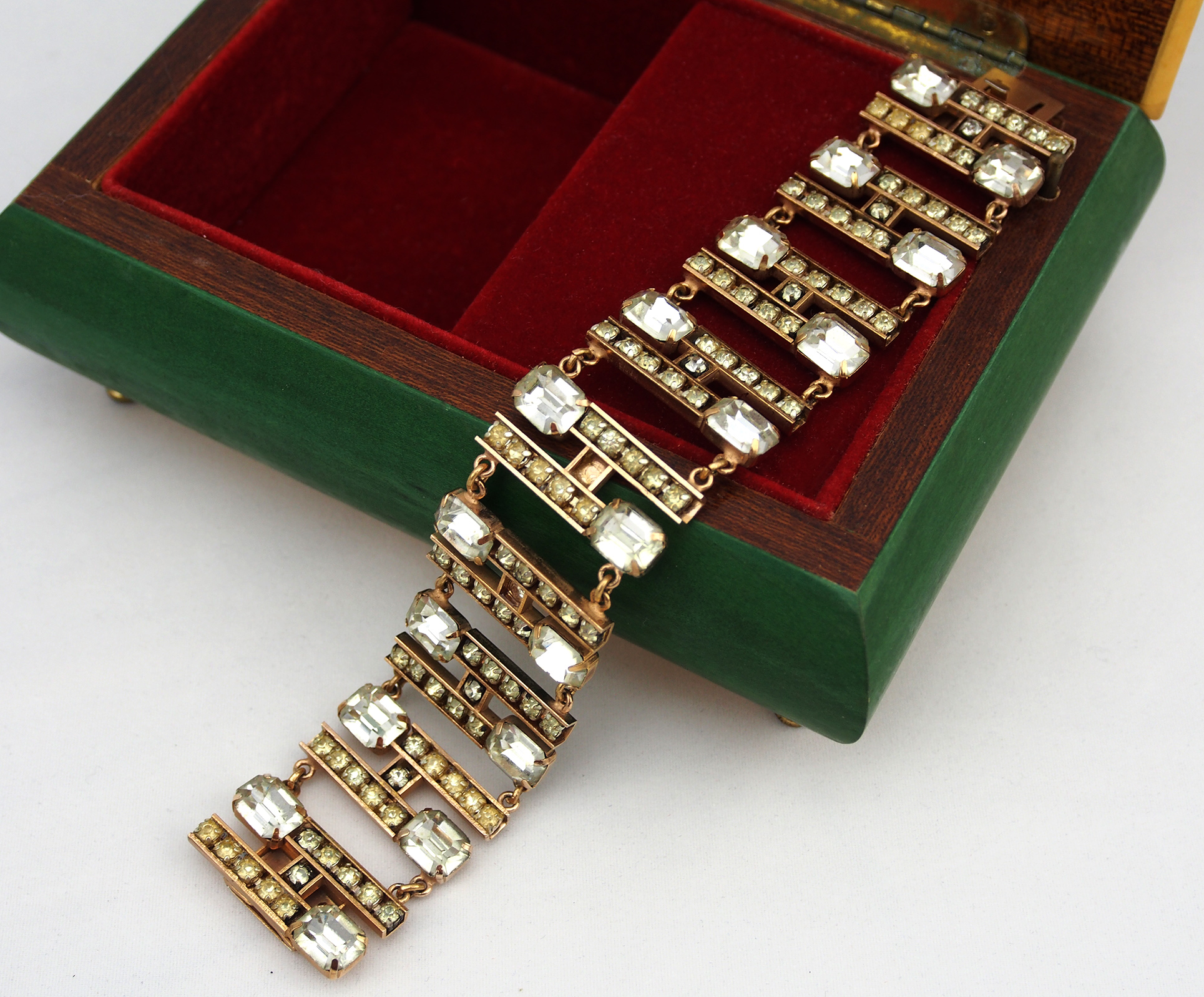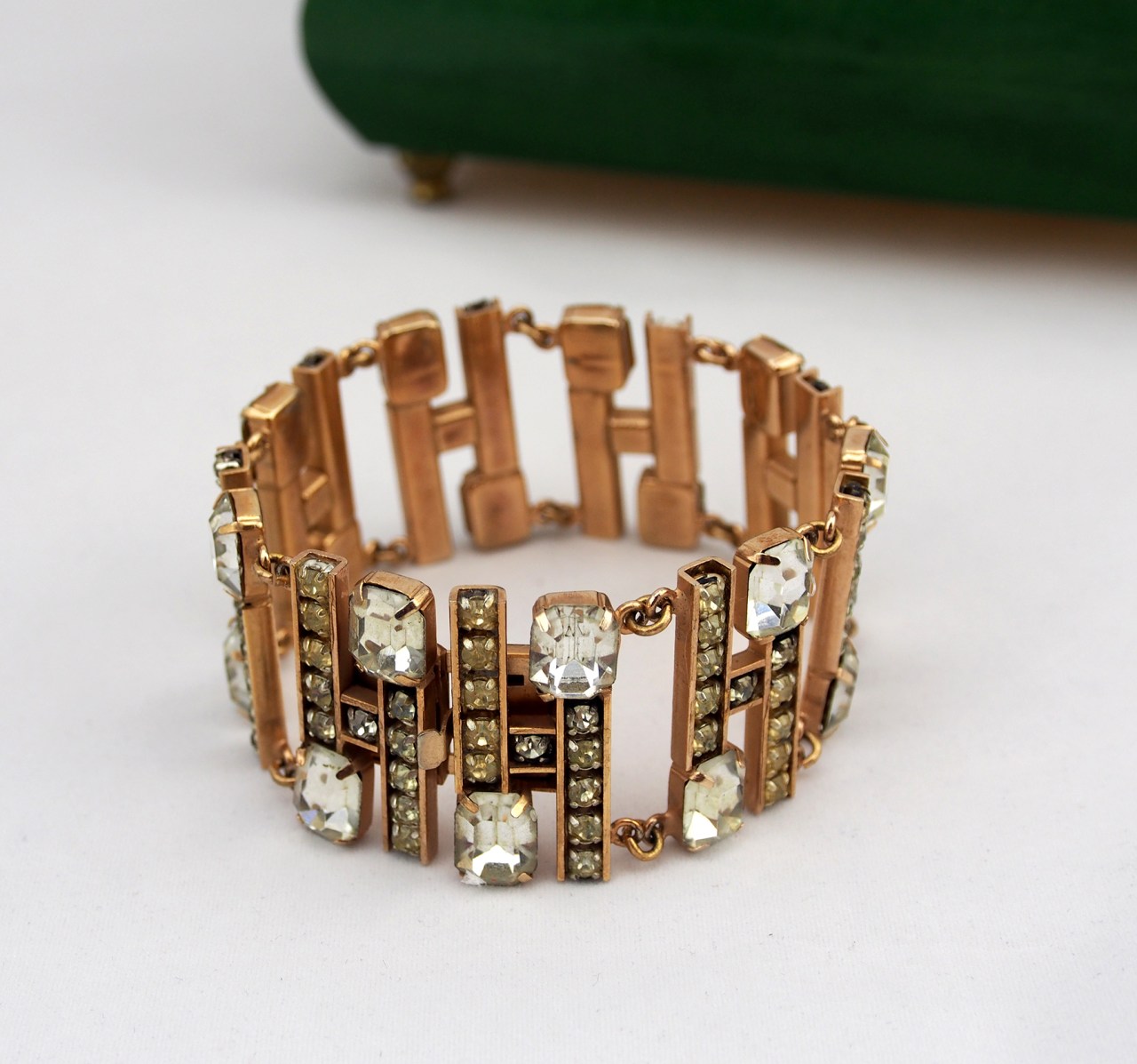 sold- 幾何/手鍊 Geometric / Bracelet 1970s TWD 3200- 已售 sold Date: 04/21/2014Author: VINLUX Category: Vintage、手鍊/手鐲 標籤: bracelet、義大利、鍍金金屬、geometric、Golden-plated metal、italy 1970s、Polished crystal glass、vintage、幾何、手鐲、拋光水晶玻璃 文章分頁導航 ← sold- 巴黎/項鏈 Paris / Choker 1980s TWD 2100- 已售 sold sold- 海.洋/手鍊 Marine / Bracelet 1980s TWD 2200- 已售 sold → 幾何/手鍊 材質:鍍金金屬/拋光水晶玻璃 產地:義大利 年份:1970 長度:約18公分 Geometric / Bracelet / 18 cm / Golden-plated metal / Polished crystal glass / Italy / 1970s 工字形的鍍金框架上 鑲滿著透明的水晶玻璃 來來回回 循環成幾何圖樣 理性的排列組合中 卻挑動著非理性的情感 這絕對是一座 手腕上的迷宮 分享此文: 按一下即可分享至 X(在新視窗中開啟) X 按一下以分享至 Facebook(在新視窗中開啟) Facebook 喜歡 正在載入...