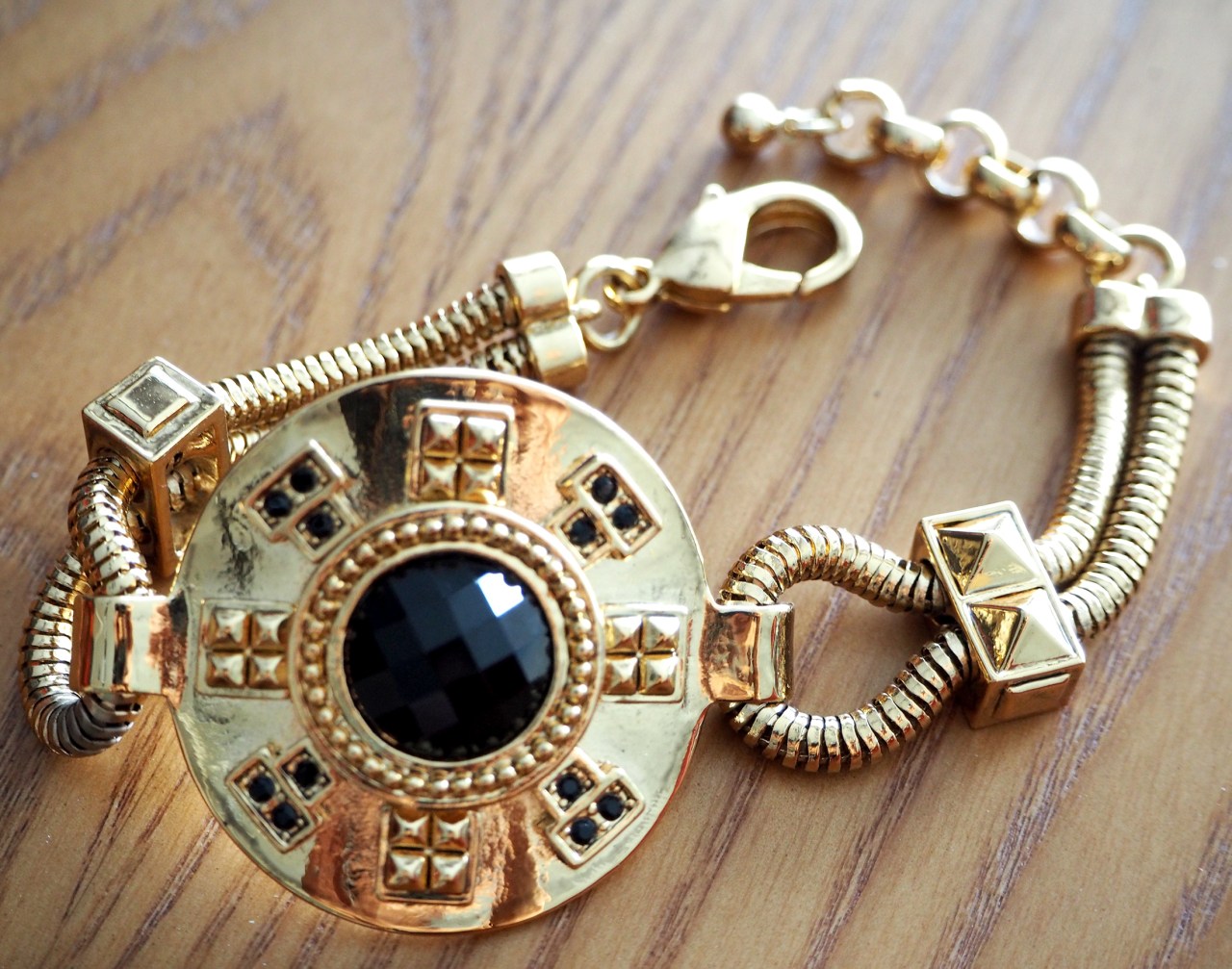 22k 鍍金黃銅、黑瑪瑙、水晶